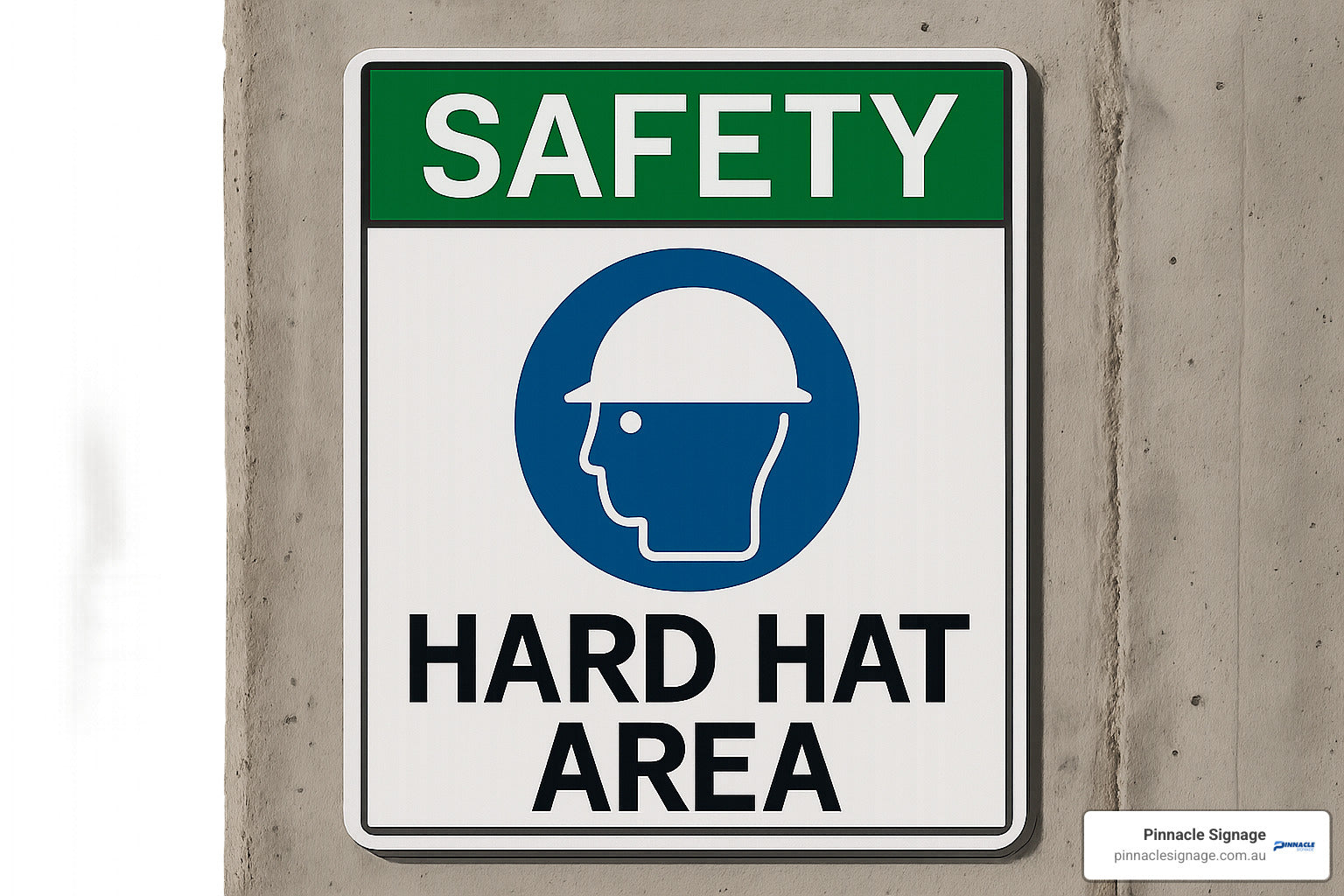 Your legal obligation under Australian WHS regulations is clear – employers must provide adequate warning of hazards and ensure workers understand PPE requirements. Hard-hat area signage isn’t just good practice; it’s a regulatory requirement that protects both your people and your business from liability.