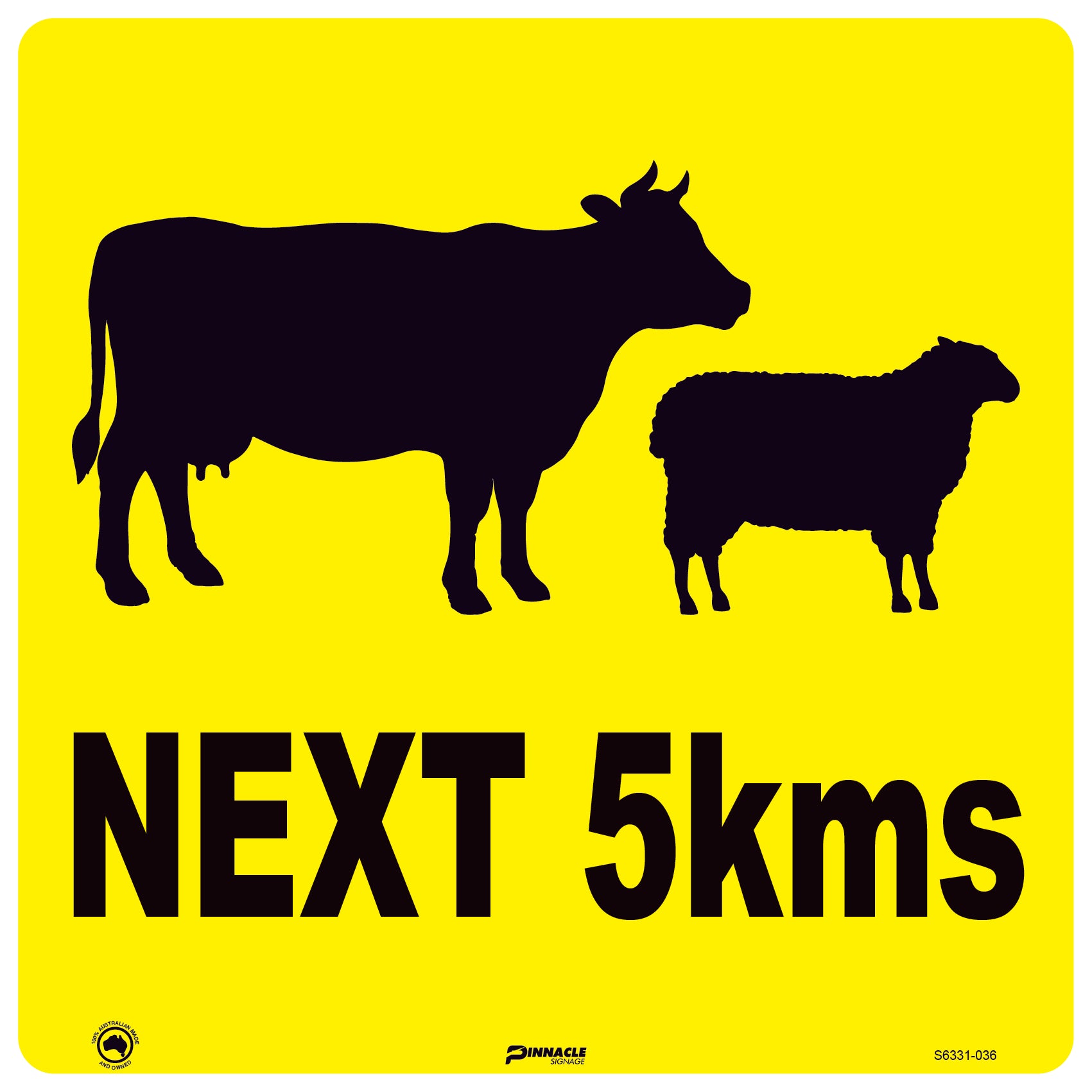 For areas with regular stock movements, "Give Way to Stock" notices placed at appropriate intervals give drivers clear instructions. Adding "Next 5KM" indicators helps maintain driver awareness over longer stretches where animals might be present.