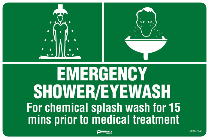 Emergency exit signs are legally required in virtually all buildings to mark evacuation routes. First aid kit location signs ensure quick access to medical supplies during injuries. Emergency assembly point signage is vital for accounting for everyone during evacuations, while emergency shower/eyewash signs direct chemical splash victims to immediate relief.