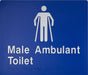 Braille Sign, Male Ambulant Toilet, 180 x 180mm, Blue/White PVC