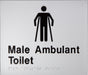 Braille Sign, Male Ambulant Toilet, 180 x 180mm, Silver/Black PVC
