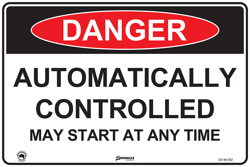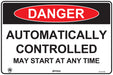 - Includes Danger Header and black text that reads AUTOMATICALLY CONTROLLED MAY START AT ANY TIME.