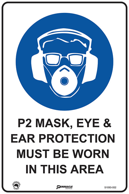 Pinnacle SignageOriginal price $10.20 - Original price $35.00Original price$10.20 - $35.00$10.20 - $35.00Current price $0.00| /Warns that P2 mask, eye protection and ear protection must be worn in the designated area. Includes pictograms and black text that reads P2 MASK, ...