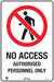 - This sign provides a clear restriction message, warning that entry is prohibited to unauthorised persons.
