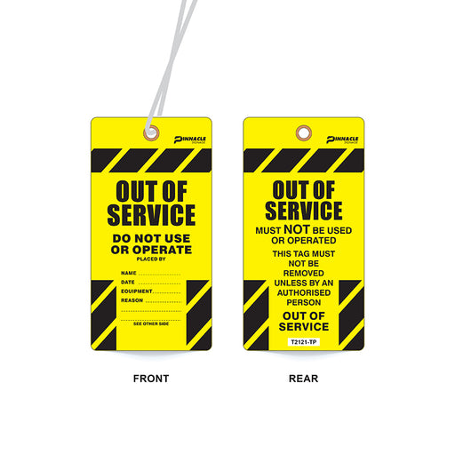 Out Of Service Tag, 75 x 145mm Water & Tear Proof, Eyelet & String, Pack/100