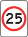 • This sign indicates a maximum speed limit of 25 kilometres per hour (km/h) for vehicles on the road where it is installed.