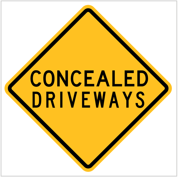 - This sign warns drivers that there are concealed driveways ahead.