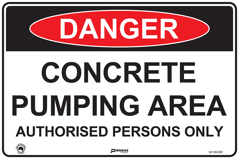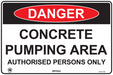 • Includes Danger Header and black text that reads CONCRETE PUMPING AREA AUTHORISED PERSONS ONLY.