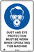 • Includes pictogram and bold black text that reads DUST MASK AND EYE PROTECTION MUST BE WORN WHEN OPERATING THIS MACHINE.