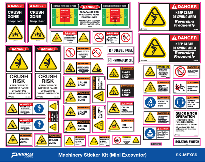 Machinery Sticker Kit, Mini Excavator (< 8t)