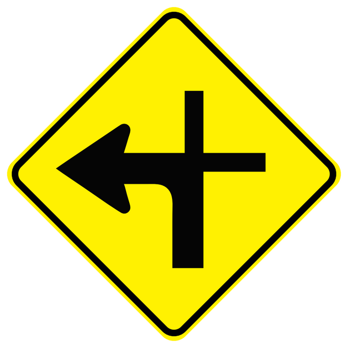 • The Modified Crossroad Left Symbolic Sign (W9-3/L) is a vital traffic sign designed to warn drivers of an upcoming crossroad on the left where the priority road continues.