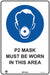• Includes pictogram and black text that reads P2 MASK MUST BE WORN IN THIS AREA.