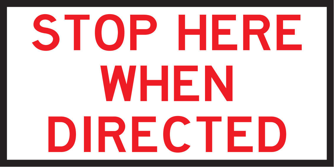 Stop Here When Directed, Multi Message 1200 x 600mm Corflute, Class 1 Reflective