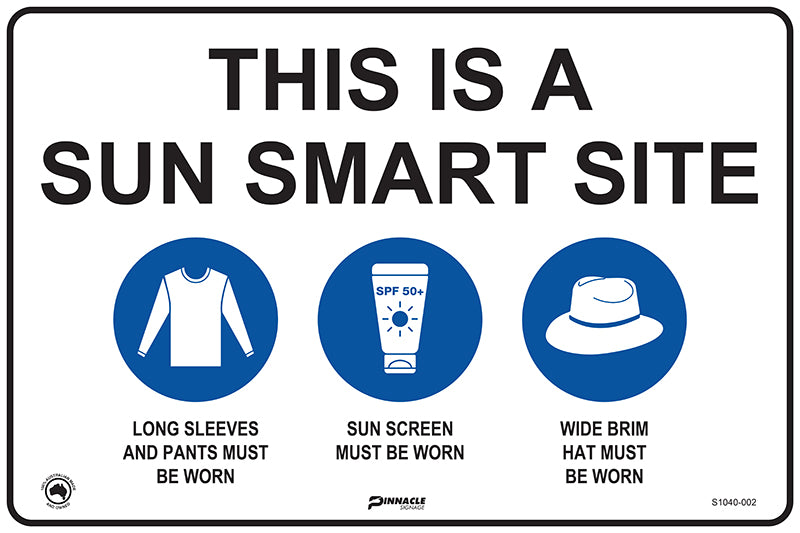- Includes pictogram and black text that reads THIS IS A SUN SMART SITE.